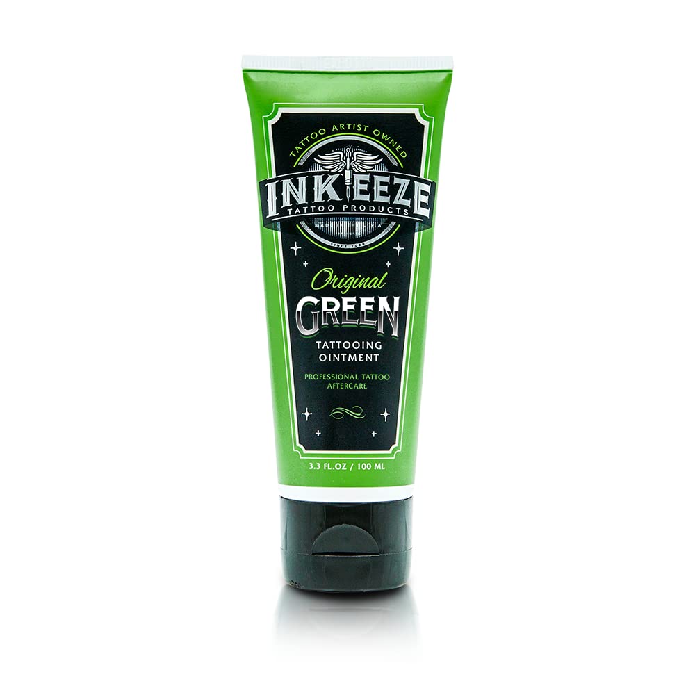 INK-EEZE Green tattooing ointment is specifically designed with vitamins A,C and E along with botanical extracts for use during the application of your new tattoo and as an aftercare product. The first-ever mineral tattoo sunscreen that rubs clear onto the skin and allows you to showcase your ink with the clarity and pride it deserves.